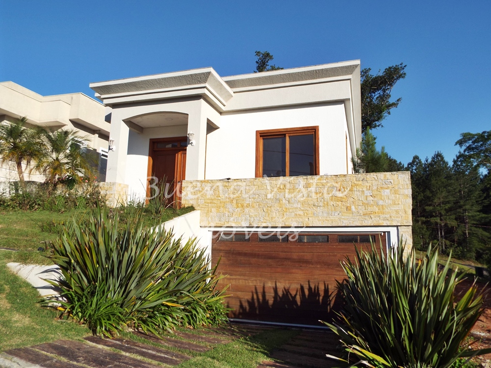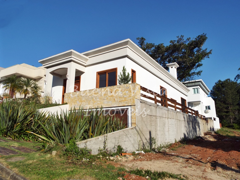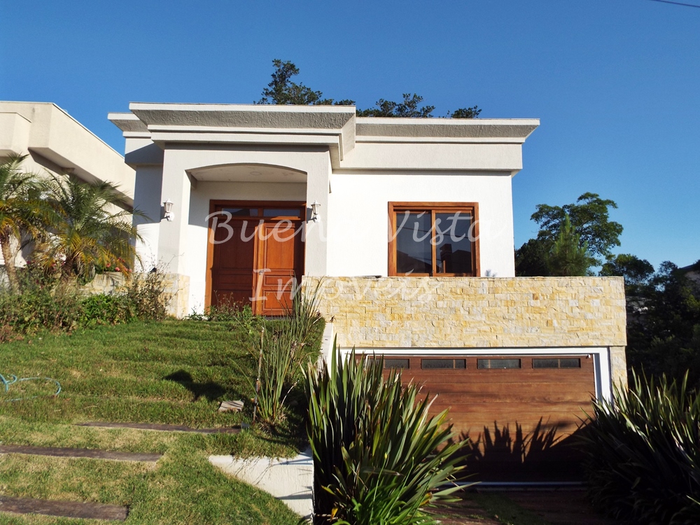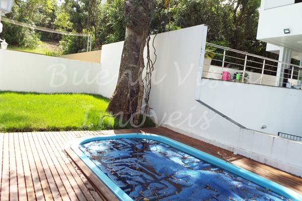 Casa térrea com: 3 suítes com armários planejados, estar/jantar integrados, cozinha mobiliada com churrasqueira, lavabo, lavanderia, garagem fechada para 4 carros com churrasqueira, piscina.