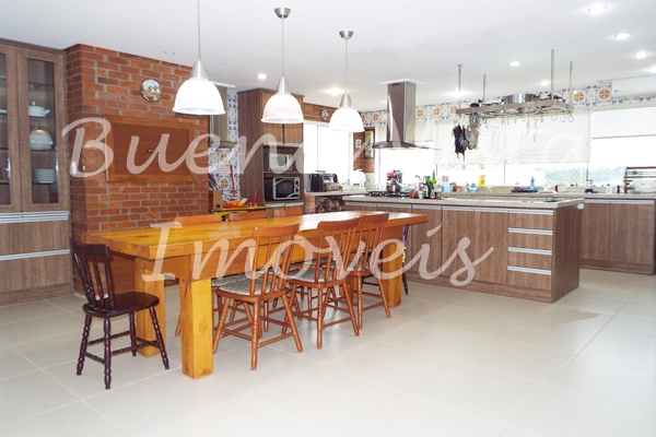Casa com: 3 suítes com sacada, sendo a master com hidromassagem e closet, estar com lareira/jantar com churrasqueira/cozinha integrados, escritório, lavabo, lavanderia, adega, área de serviço, banheiro, garagem fechada para 4 carros, sotão com 60 m², amplo pátio com horta. Móveis planejados. Espera para elevador.