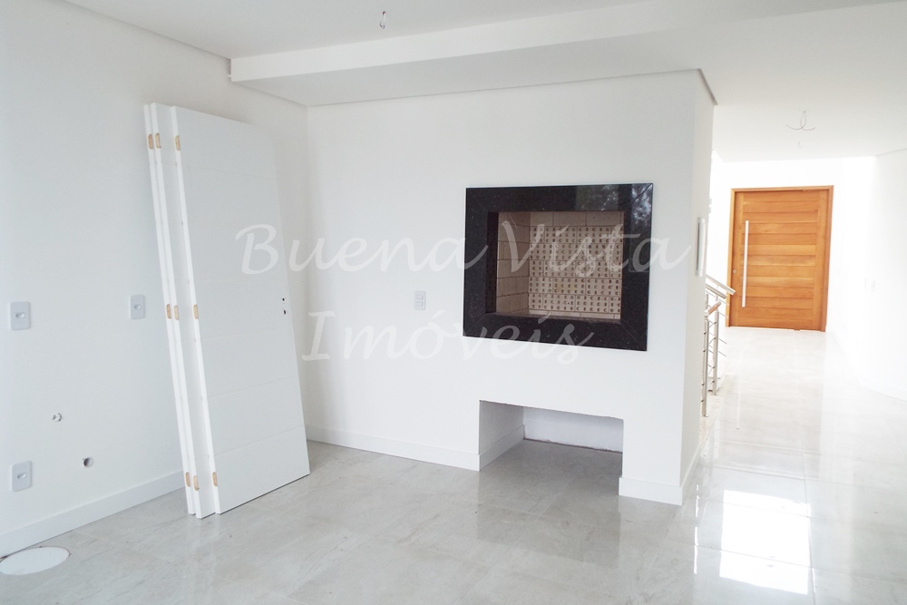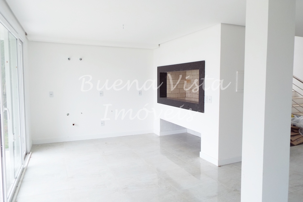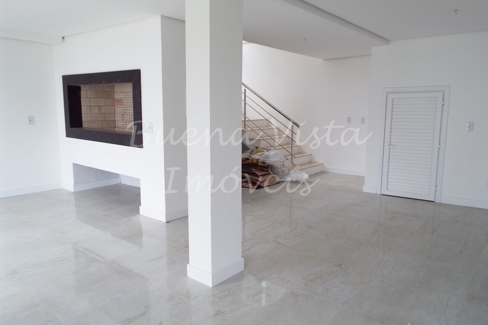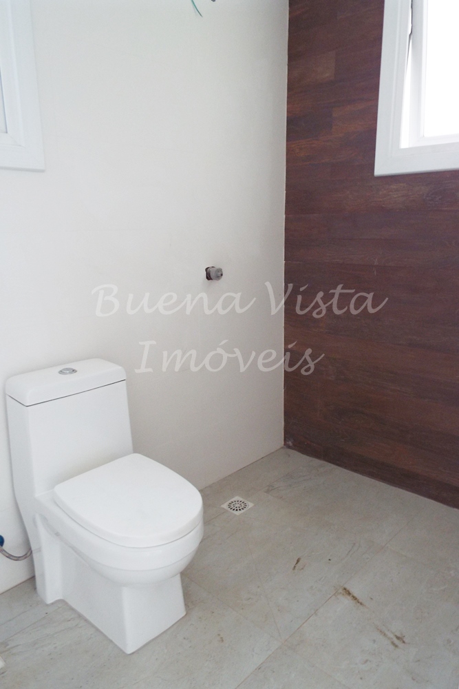 Térreo: Estar com pé direito duplo, jantar e cozinha com churrasqueira, lavabo, suíte térrea.