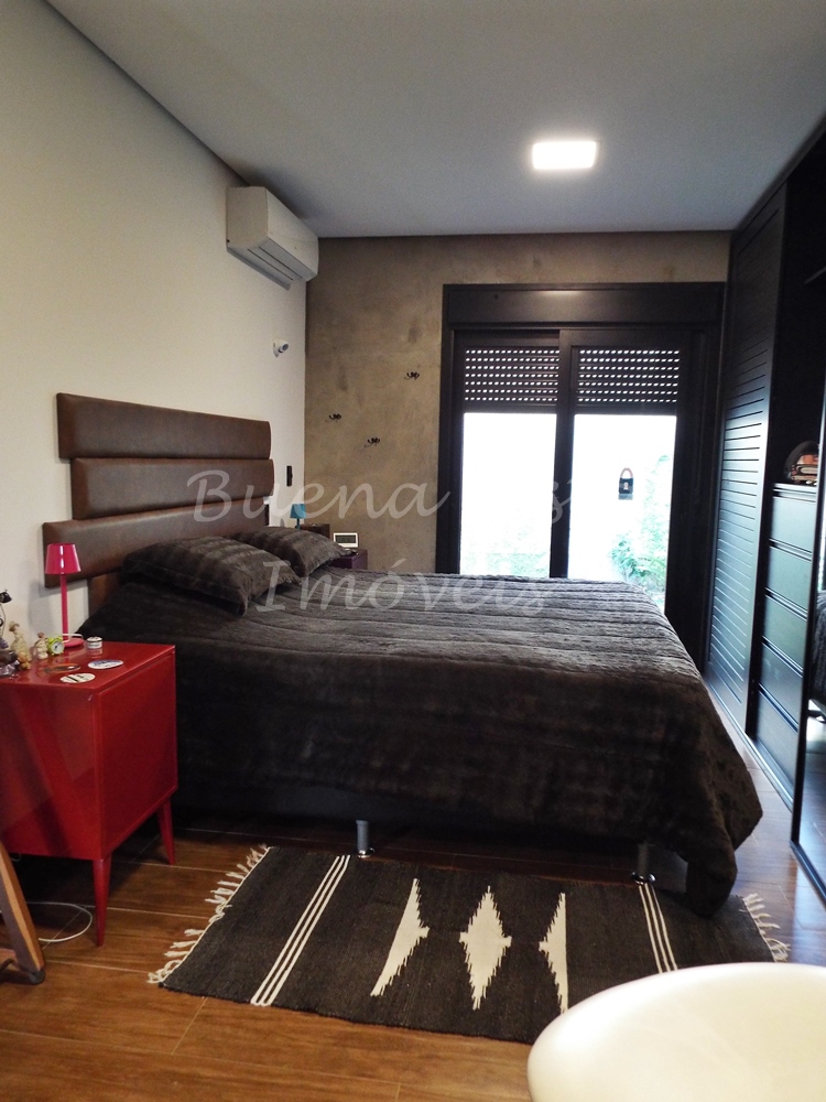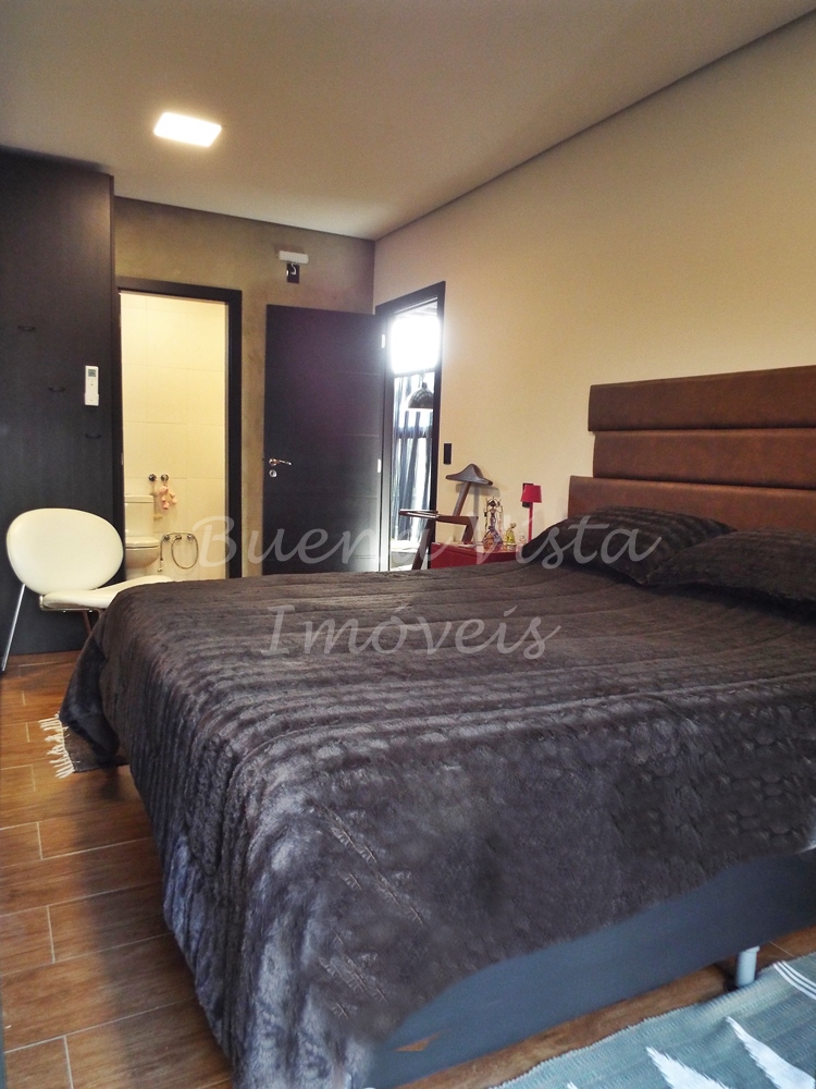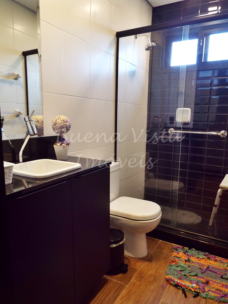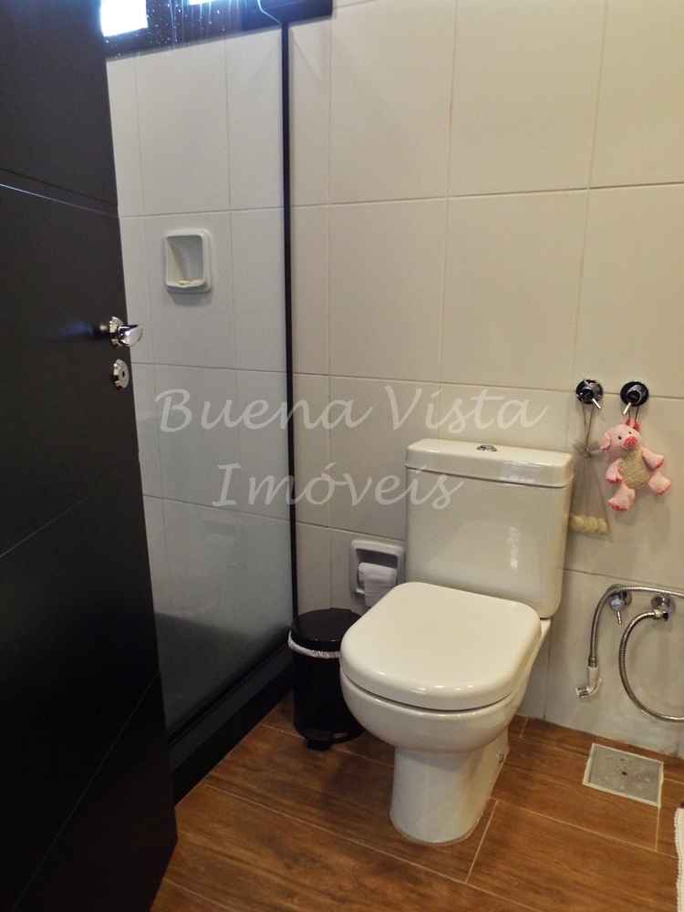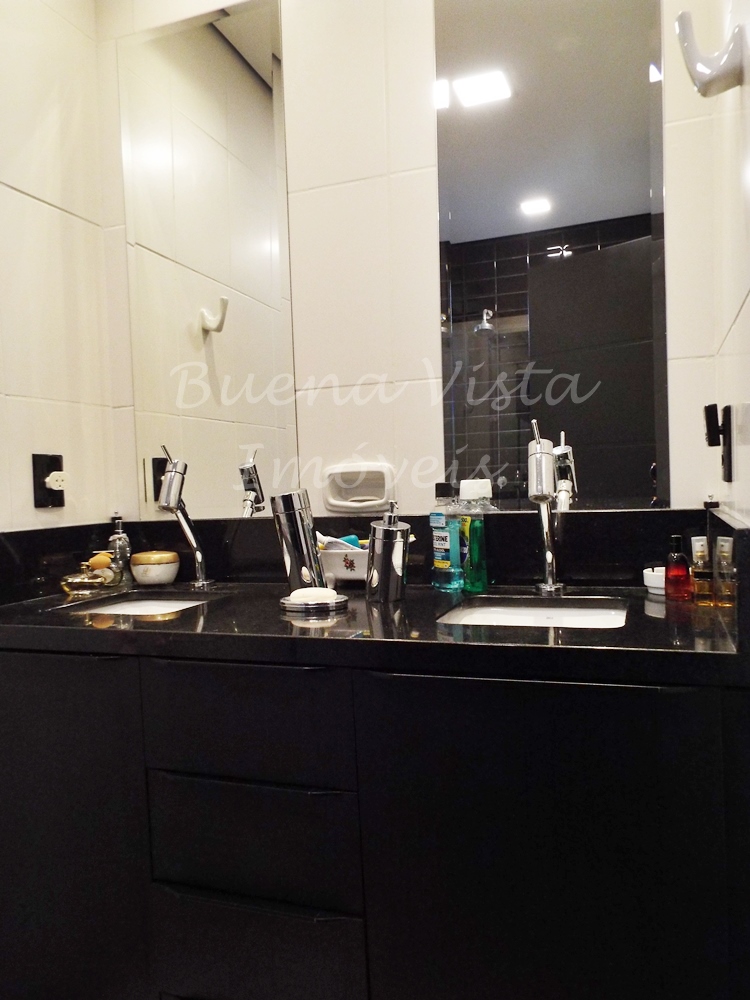 3 dormitórios, sendo a suíte do casal com banheiro com dois chuveiros e duas pias. Banheiro social, rouparia, lavabo, lavanderia, despensa.