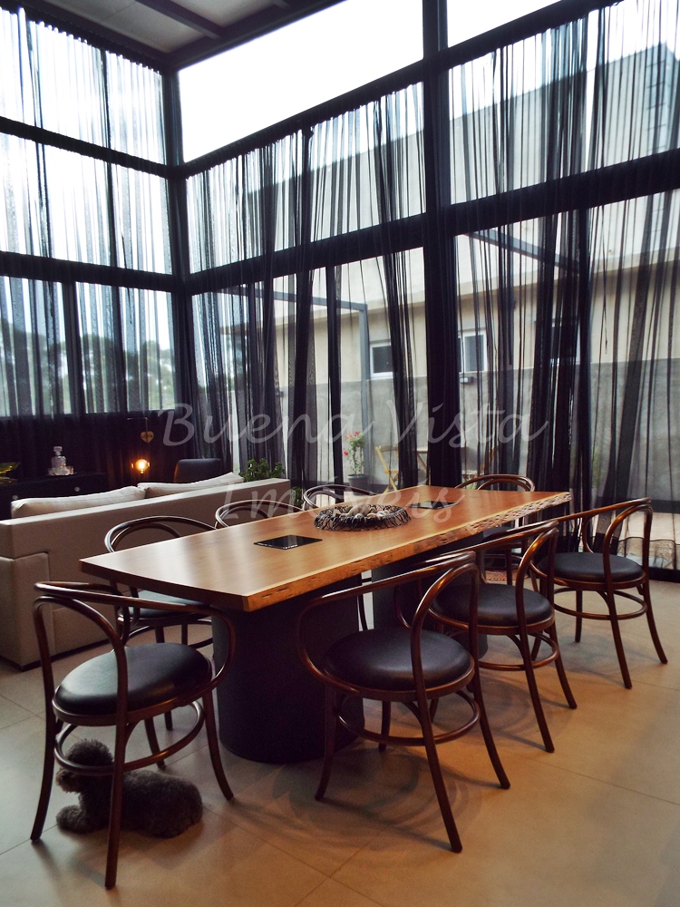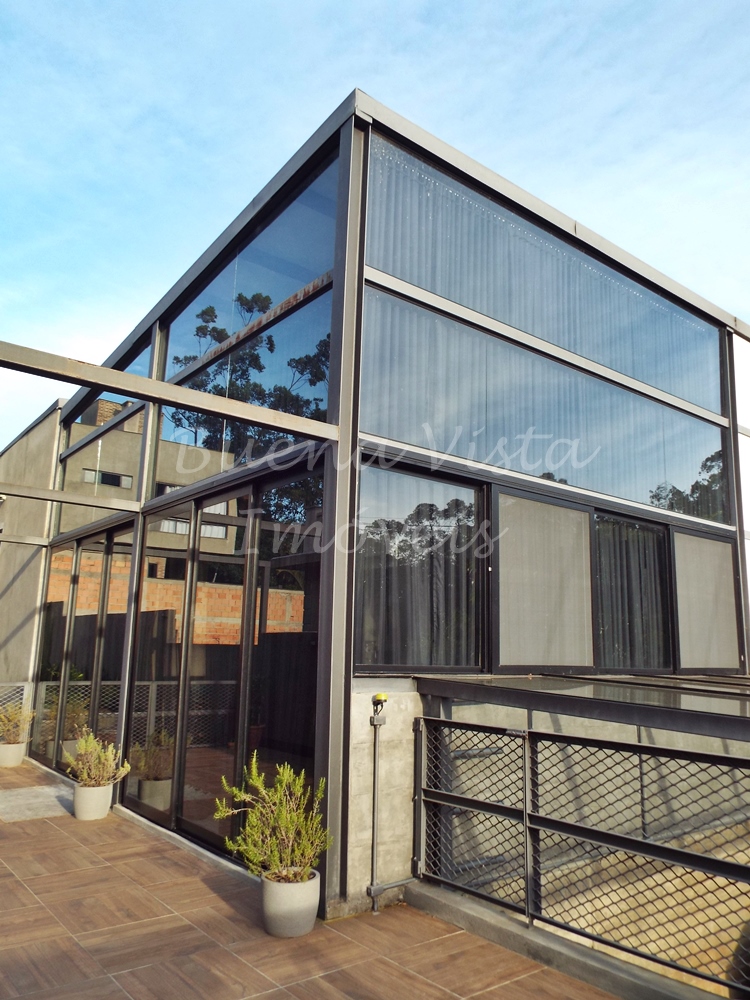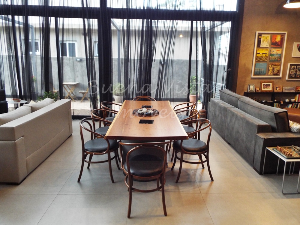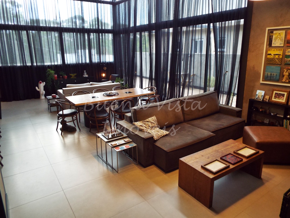 Sala de estar com pé direito elevado (tem possibilidade de fazer um mezanino), depósito, central de gás, lixeira, terraço com vista panorâmica, fachada toda em vidro laminado 10 mm, telhas térmicas, iluminação em LED, 5 aparelhos de ar condicionado, circuito de monitoramento, iluminação de emergência, pressurizador inteligente.