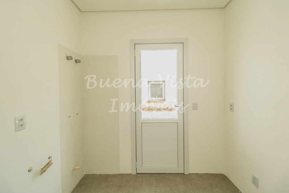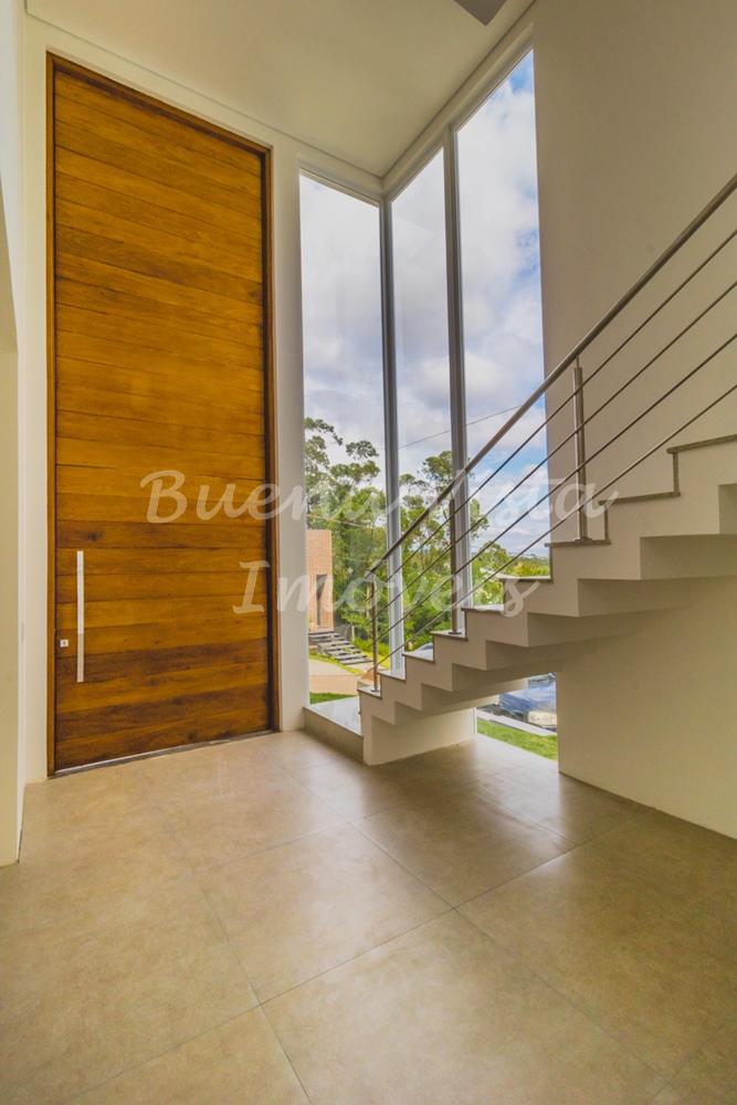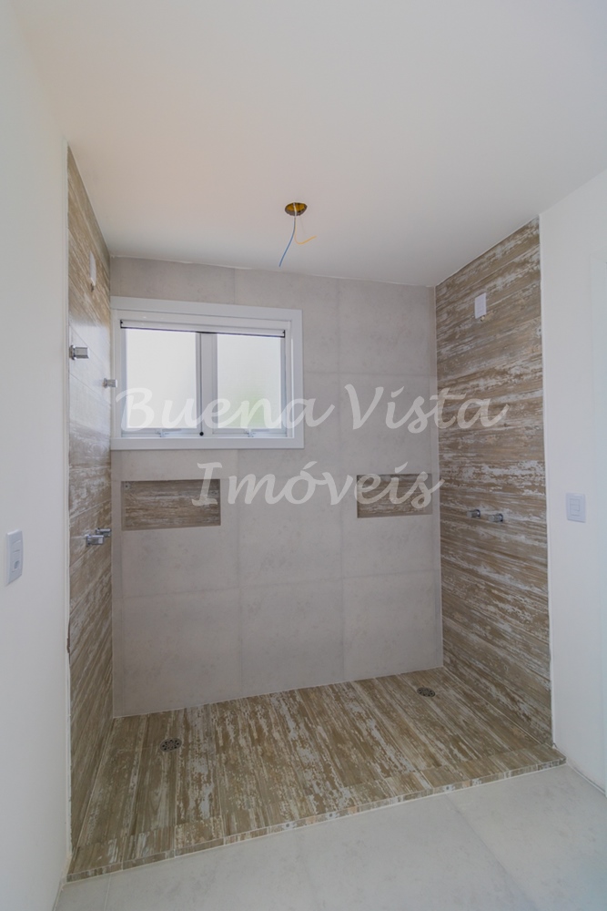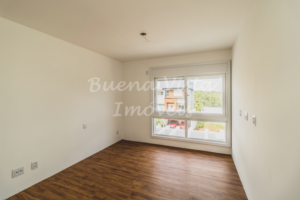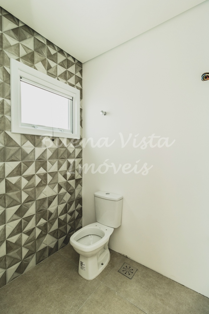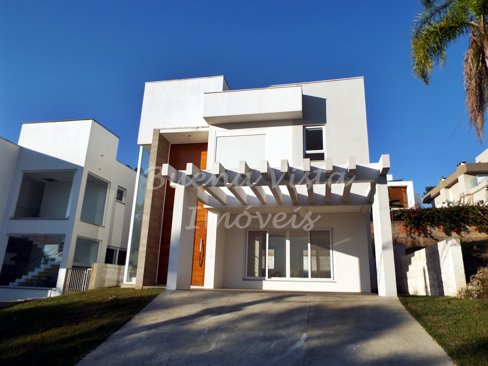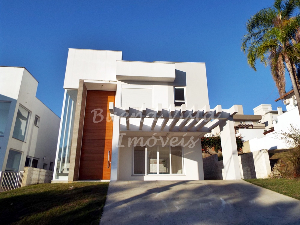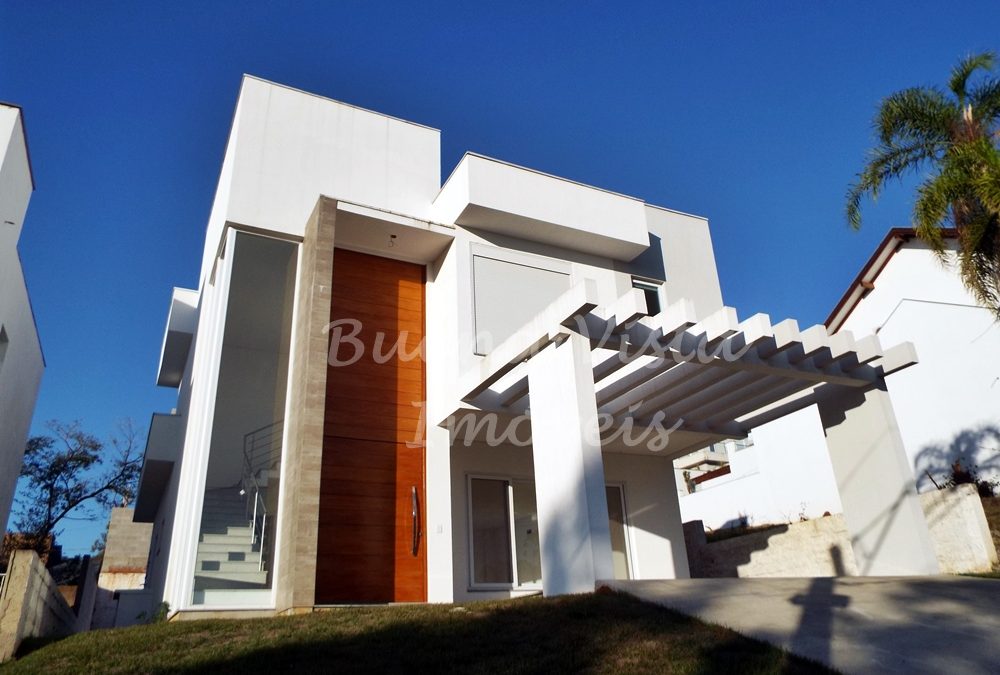 Térreo: Hall de entrada, estar com lareira, jantar e cozinha integrados. Lavabo, área de serviço e depósito. Garagem para dois carros.