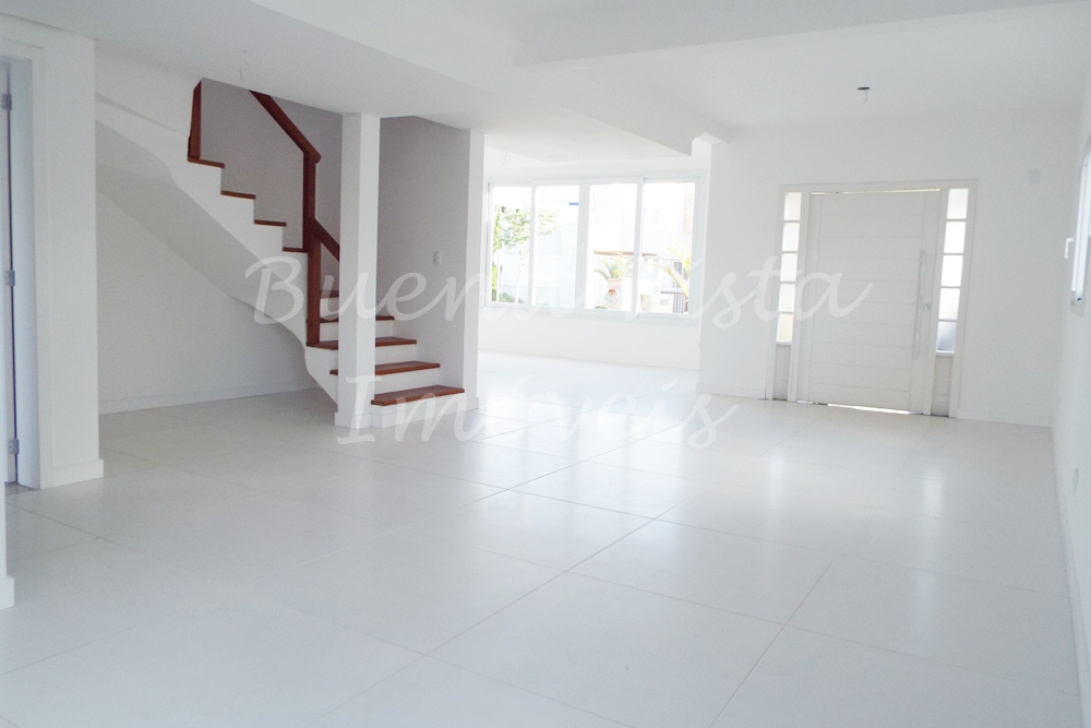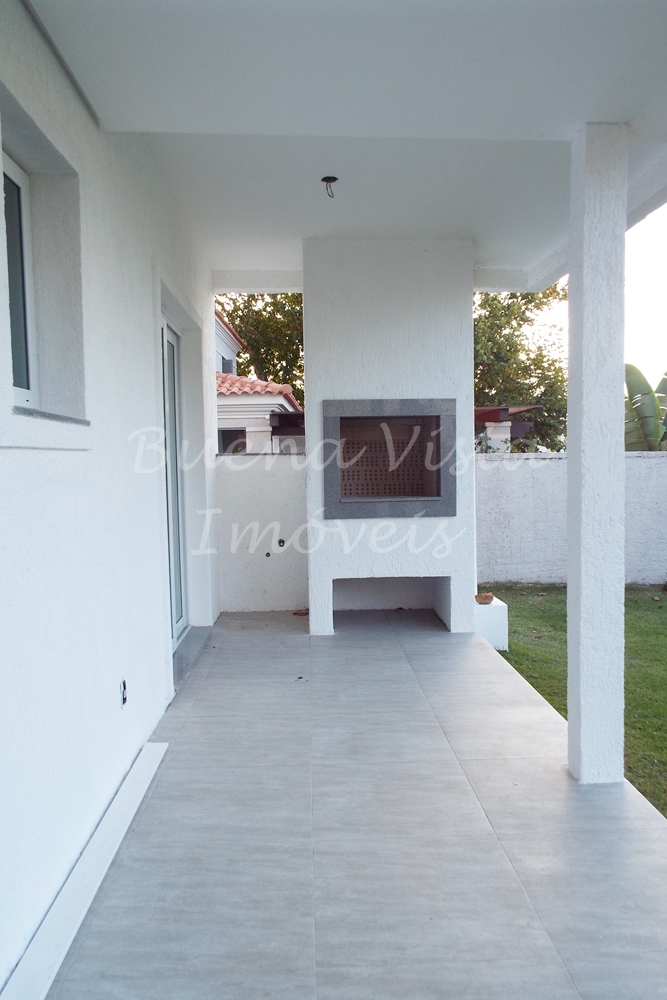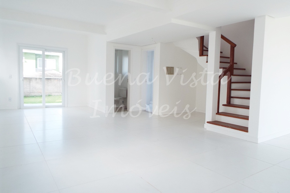 Térreo: Estar com lareira; jantar e cozinha integrados. Área de churrasqueira. Área de serviço. Lavabo. Amplo pátio. Garagem para 2 carros.