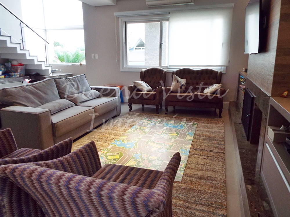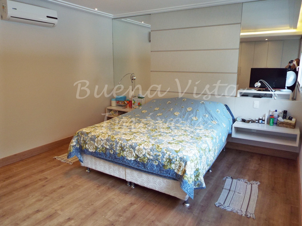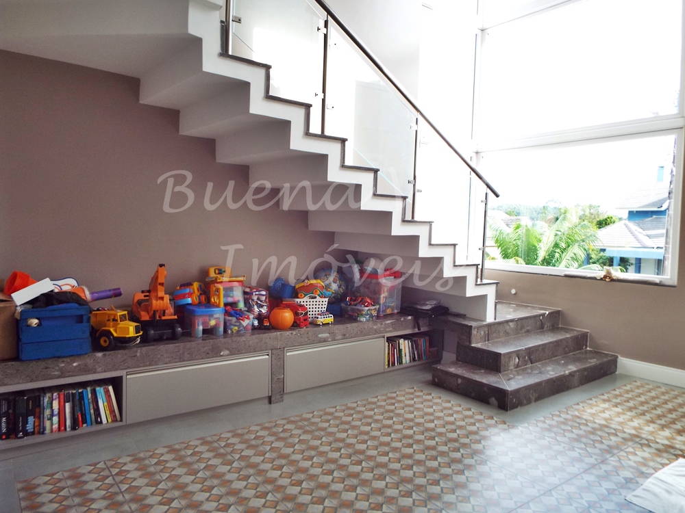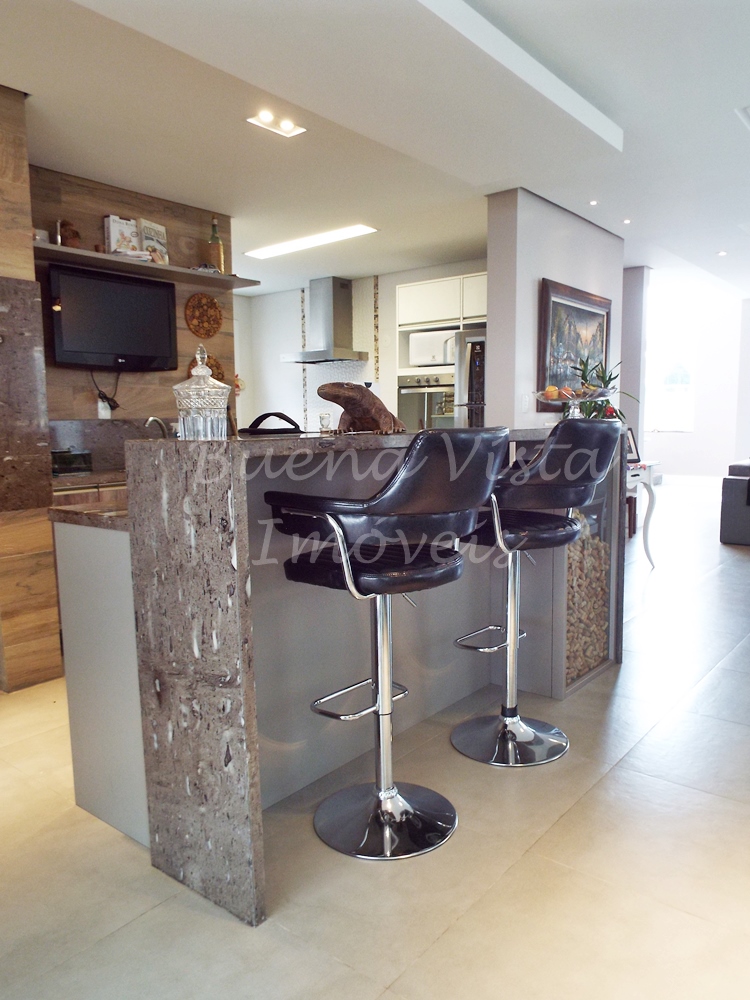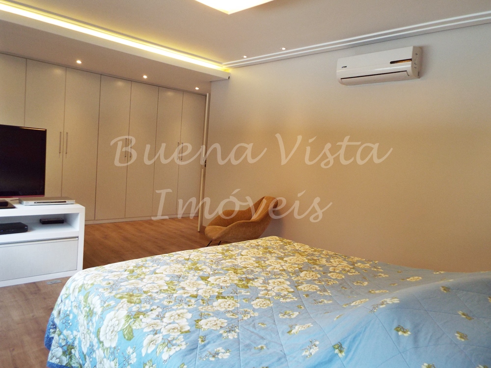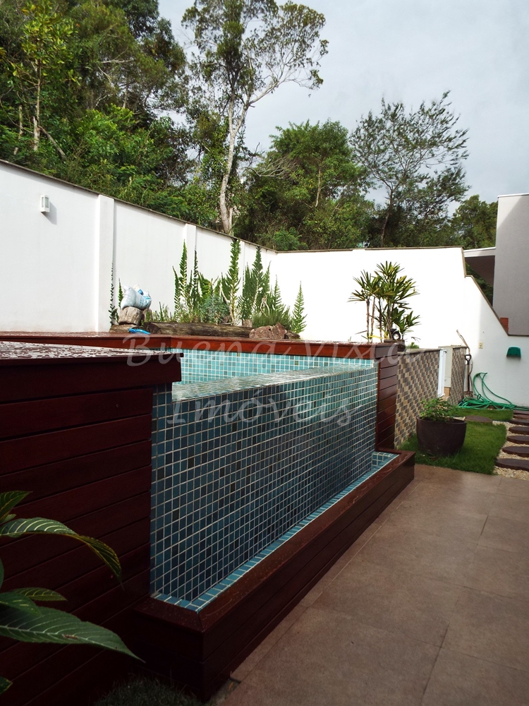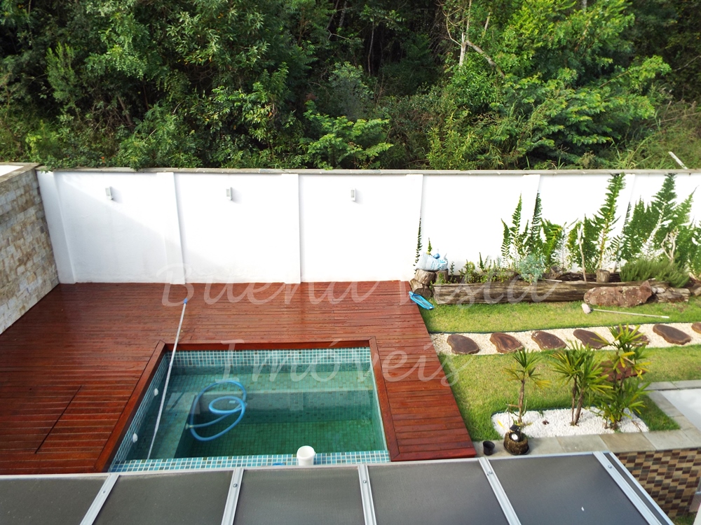 Térreo: Estar com lareira, jantar e cozinha integrados. Lavabo. Espaço gourmet com churrasqueira, fogão campeiro e chopeira. Área de serviço. Depósito. Piscina.