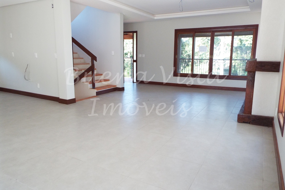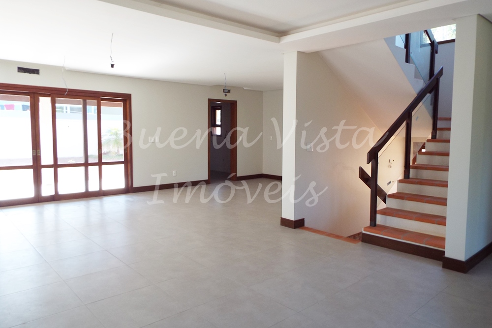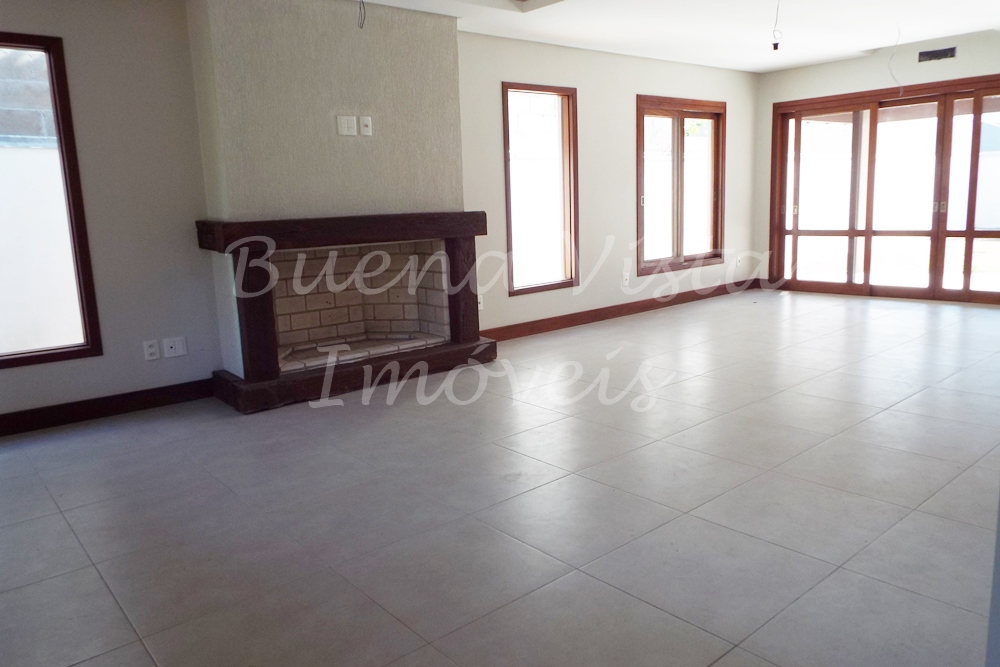 Térreo: Estar com lareira, jantar, cozinha integrados. Área de serviço, Lavabo. Área externa com churrasqueira. Amplo pátio.