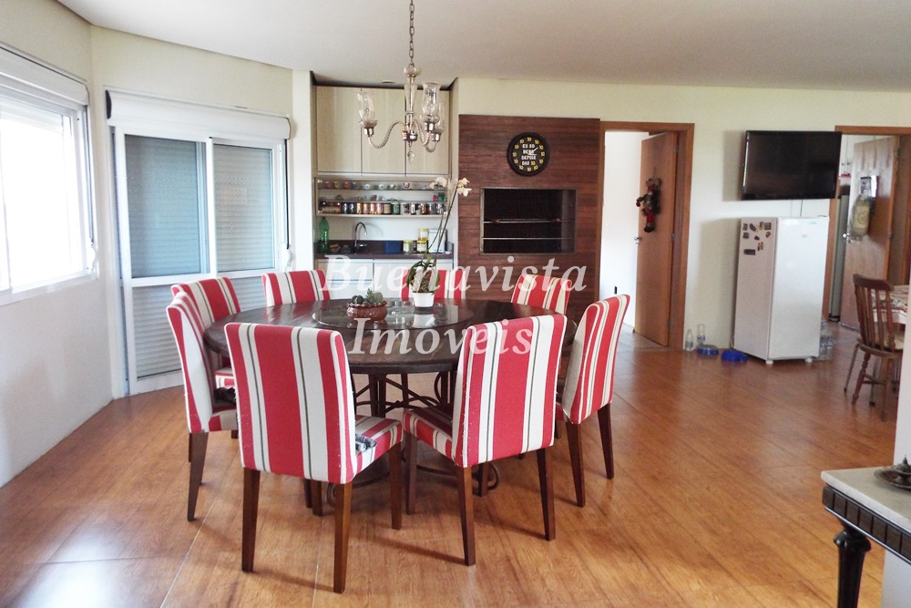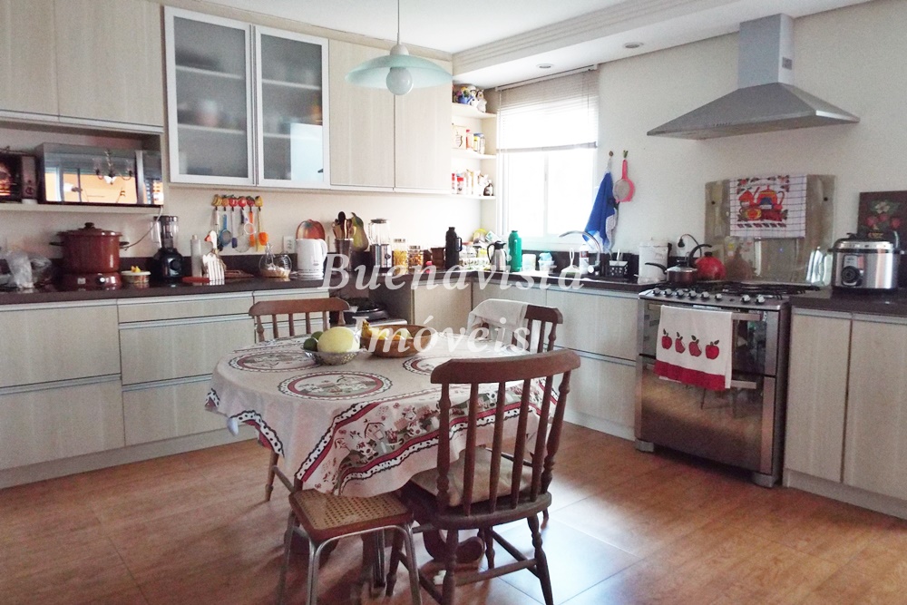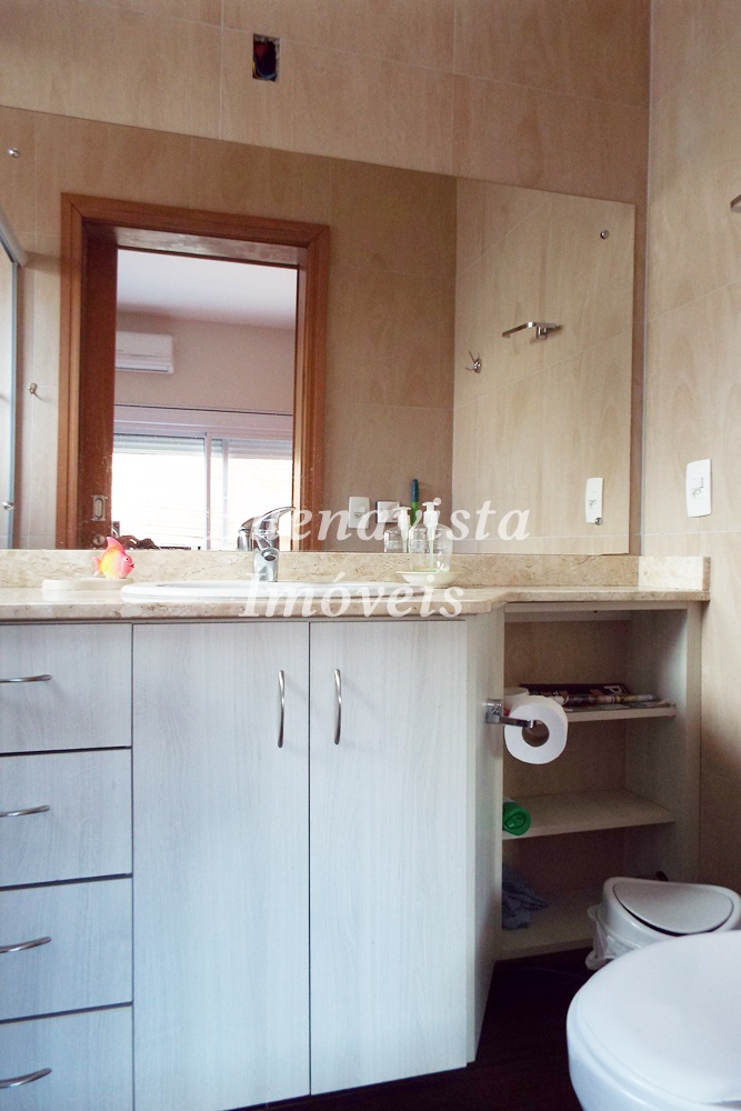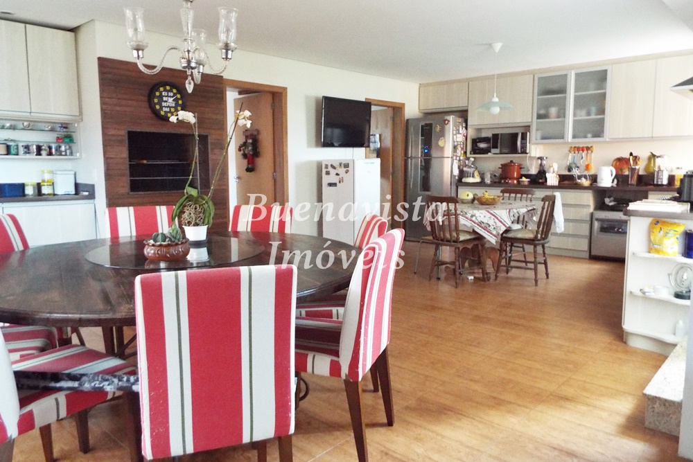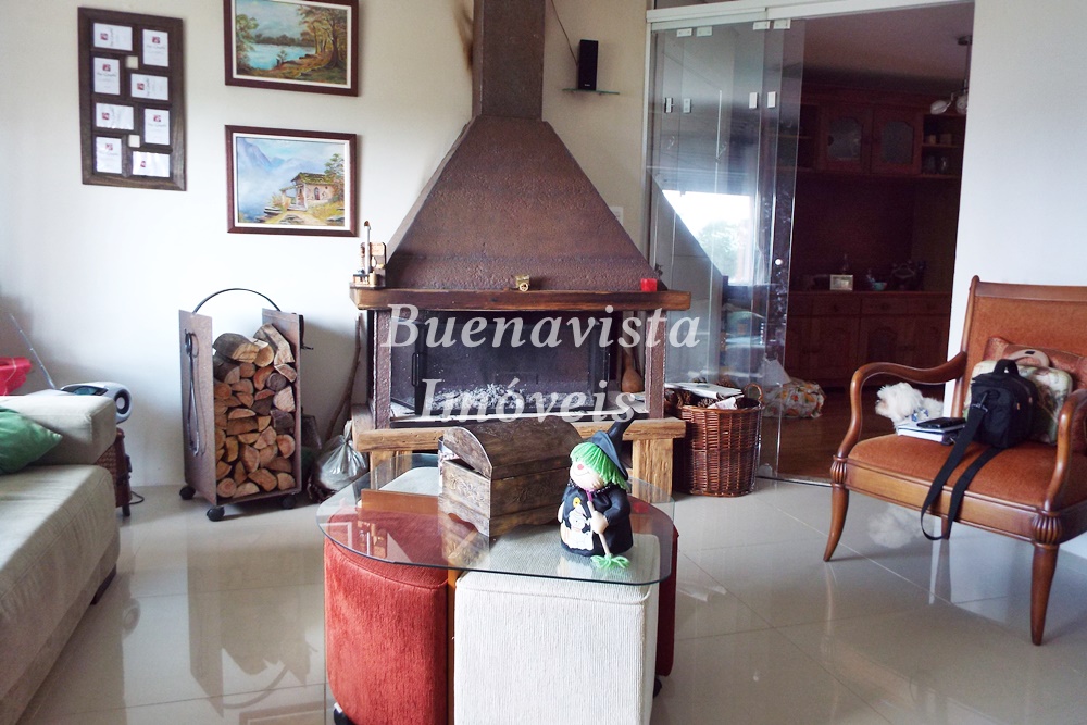 Térreo: Estar com lareira, jantar com churrasqueira e cozinha integrados. Lavabo. 1 suíte . Lavanderia.